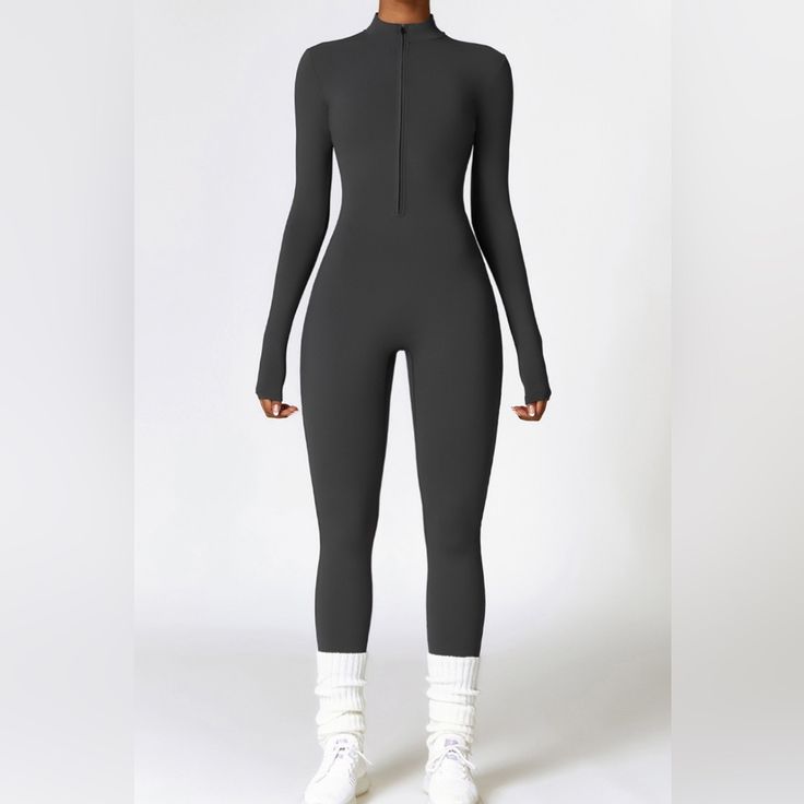 Redefine performance and style with the SculptFlex™ Zip Jumpsuit, the ultimate fusion of comfort, function, and effortless elegance. Designed for the modern woman who moves with confidence, this sleek, full-body jumpsuit hugs your curves while allowing complete flexibility—making it perfect for yoga, workouts, or simply owning your day. Crafted from our signature SculptFlex™ fabric, this jumpsuit provides a breathable, second-skin feel with high-stretch compression that enhances your natural shape. The full-length, body-contouring design ensures a flawless fit, while the front zip closure allows for adjustable coverage, taking you from studio to street with ease. Why You’ll Love It: Buttery-soft, sweat-wicking fabric keeps you cool and dry. Sculpting compression fit for enhanced support and shape. Full-length sleeves and high neckline for a sleek, sophisticated look. Front zip closure for customizable styling and ventilation. Thumbhole cuffs (optional) & ankle-length design for a polished finish. Available in timeless Midnight Navy, Dusty Blue, Onyx Black and other colors